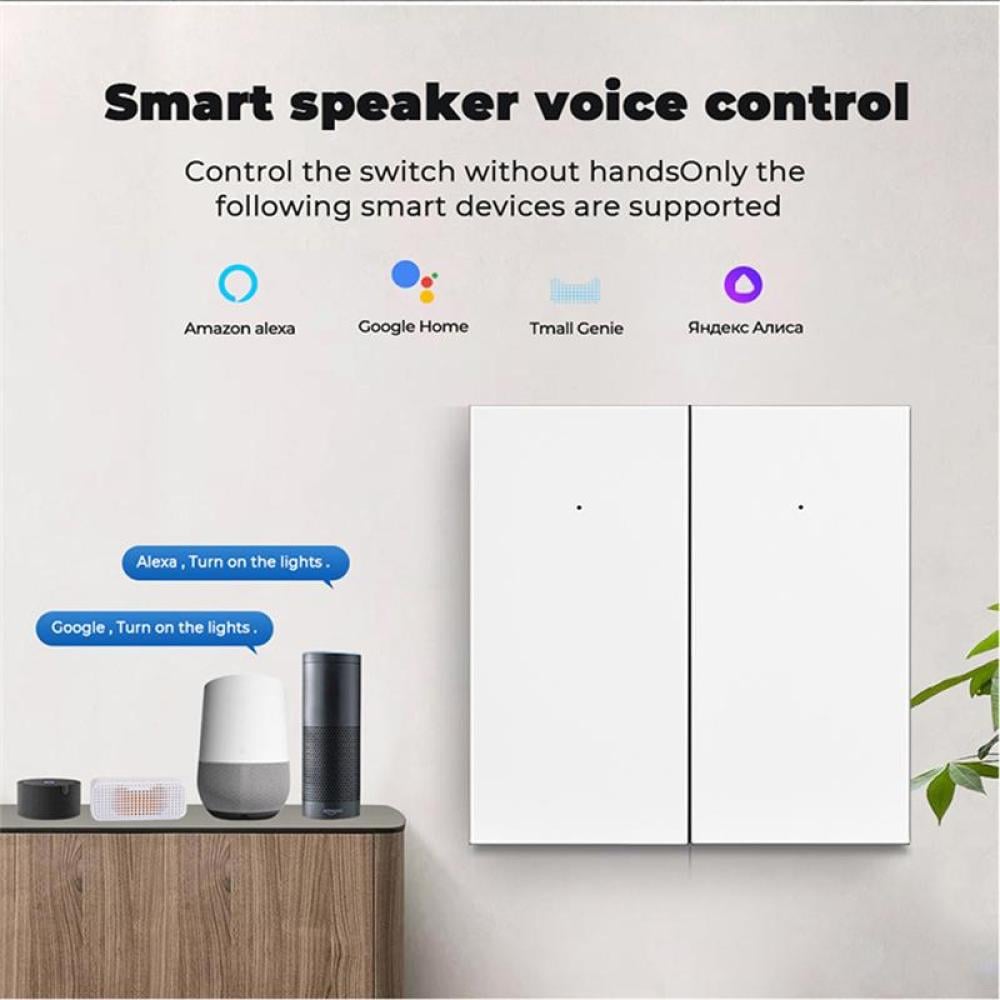 الى جانب شكلها العصري تمتاز بأنها تدعم المساعد الصوتي Alexa و Google home مما يمكنك بالتحكم الكامل بجميع المفاتيح عبر الصوت وباللغة العربية اذا كان يوجد عندك جهاز اليكسا بالمنزل ويمكن التحكم بالمفاتيح ايضاً عن طريق تطبيق Smart Life المسجل على العلبة.
